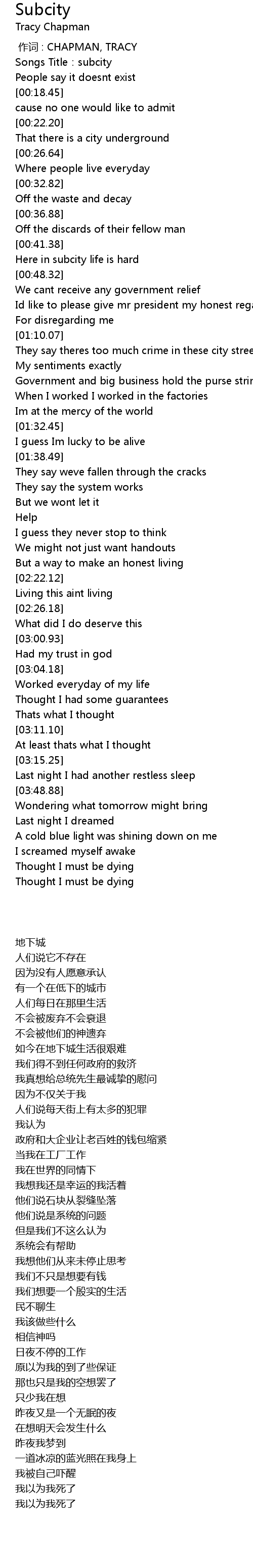 | [00:00.00] | zuò cí : CHAPMAN, TRACY |