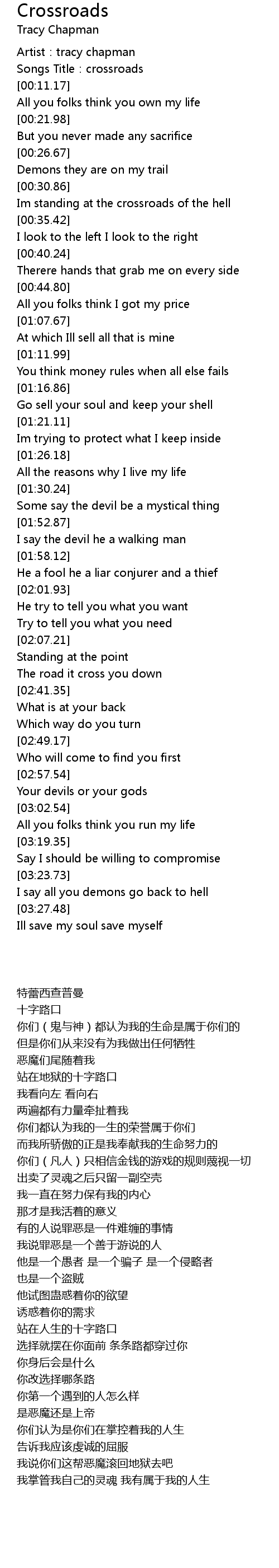 | [00:33.05] | Im standing at the crossroads of the hell |