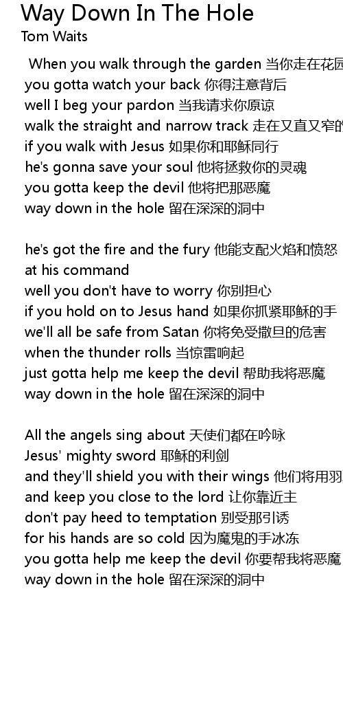 | way down in the hole 留在深深的洞中 |