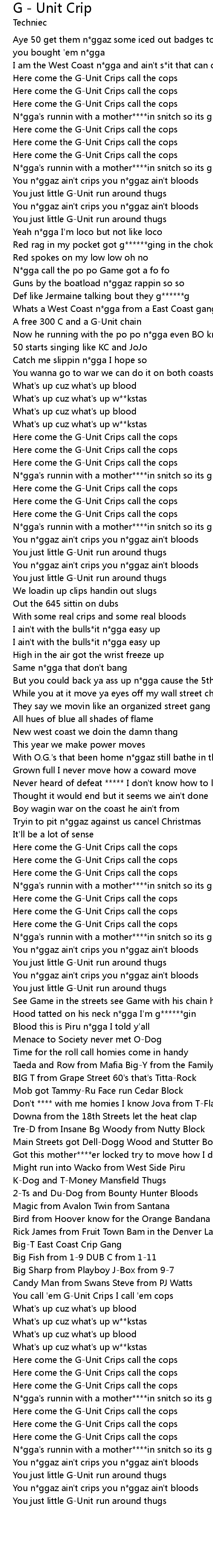 G - Unit Crip 歌词