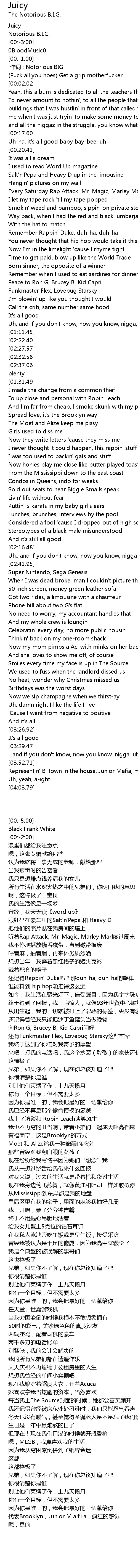 | [00:00.00] | 作词 : Notorious BIG |