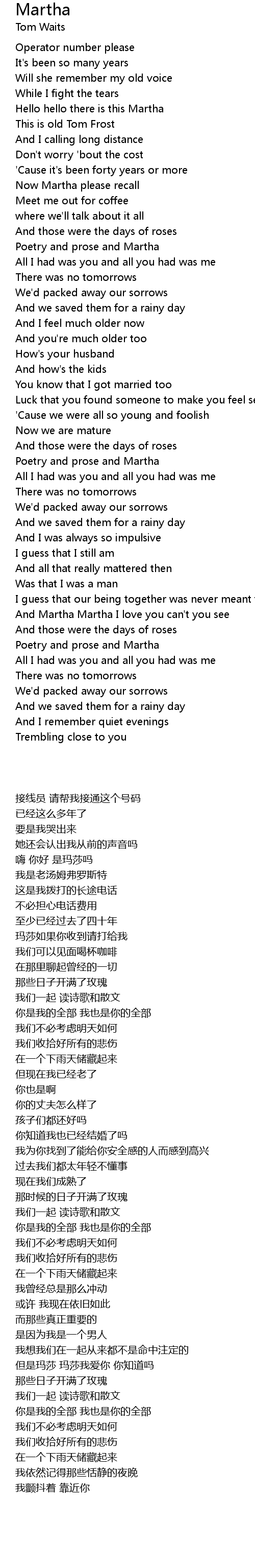 And Martha Martha I love you can't you see |
