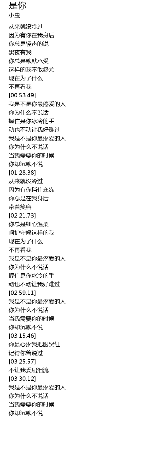 | [03:00.23] | 我是不是你最疼爱的人 |
