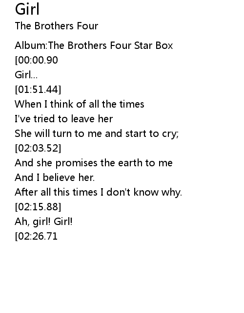 | [00:07.38] | Album:The Brothers Four Star Box |