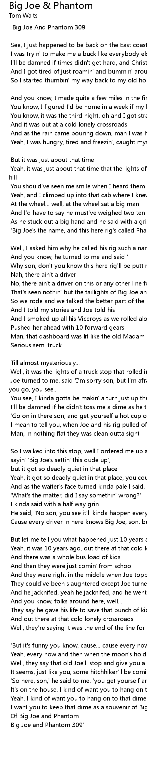 That's seen nothin' but the taillights of Big Joe and Phantom 309' |