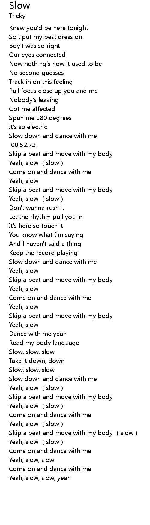 | [00:50.03] | Slow down and dance with me |