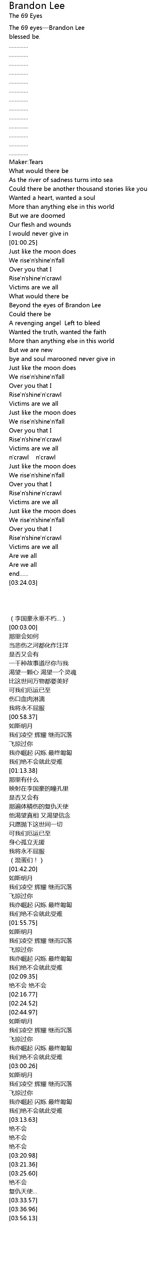 | [01:17.56] | Beyond the eyes of Brandon Lee |