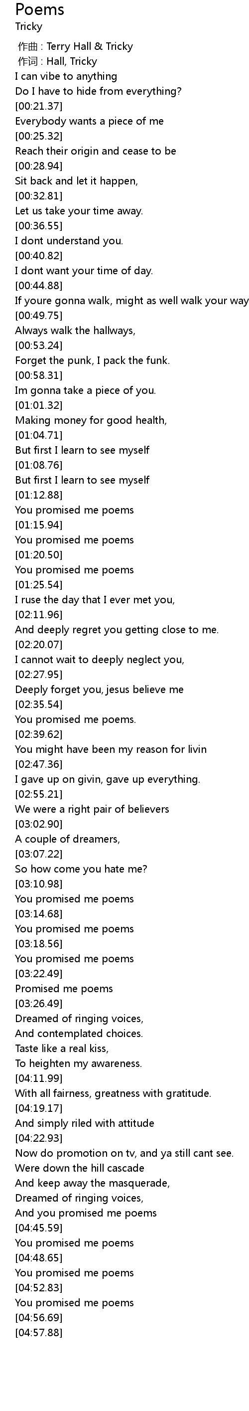 | [00:00.00] | 作曲 : Terry Hall & Tricky |