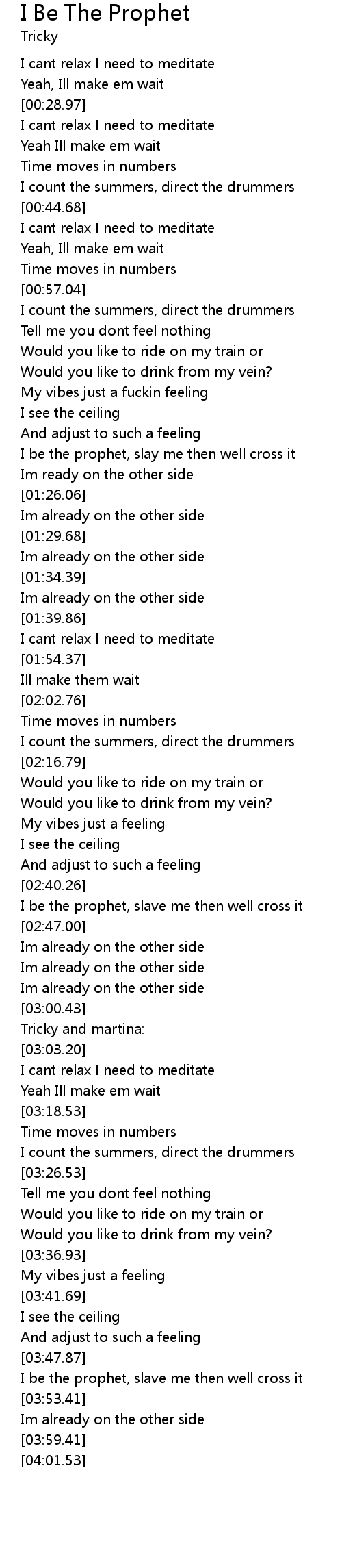 I be the prophet, slave me then well cross it |