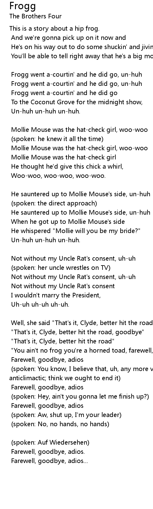 (spoken: You know, I believe that, uh, any more verses to this song would be anticlimactic; think we ought to end it) |