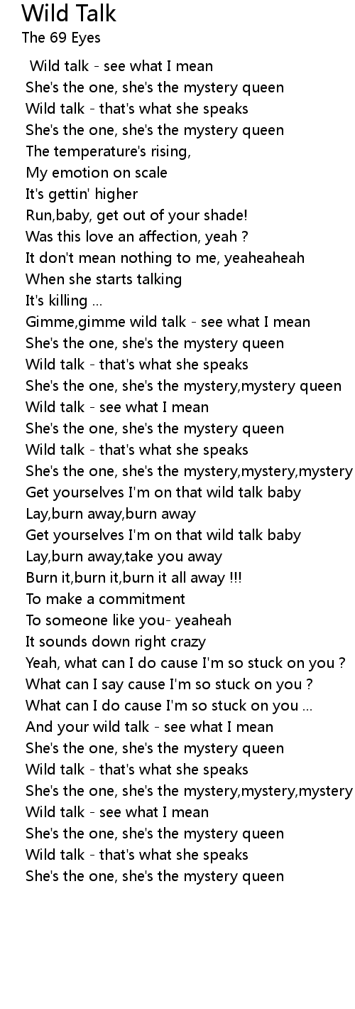 Gimme,gimme wild talk - see what I mean |