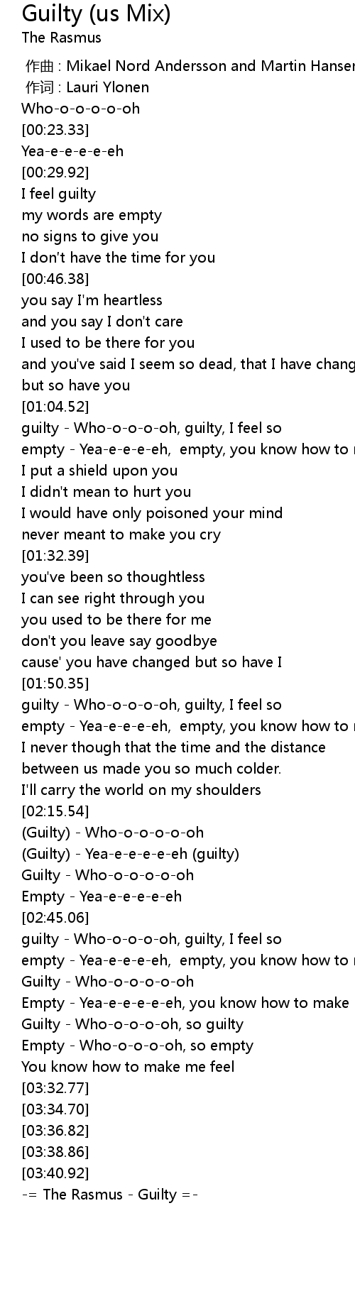 | [03:42.61] | -= The Rasmus - Guilty =- |