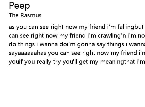 | as you can see right now my friend i'm fallingbut i'm not falling in loveas you can see right now my friend i'm crawling'n i'm not crawlin back to youi'm gonna do things i wanna doi'm gonna say things i wanna sayi'm gonna do things i wanna sayaaaaaahas you can see right now my friend i'm dreamingbut i'm not dreaming of youif you really try you'll get my meaningthat i'm not coming back to you |