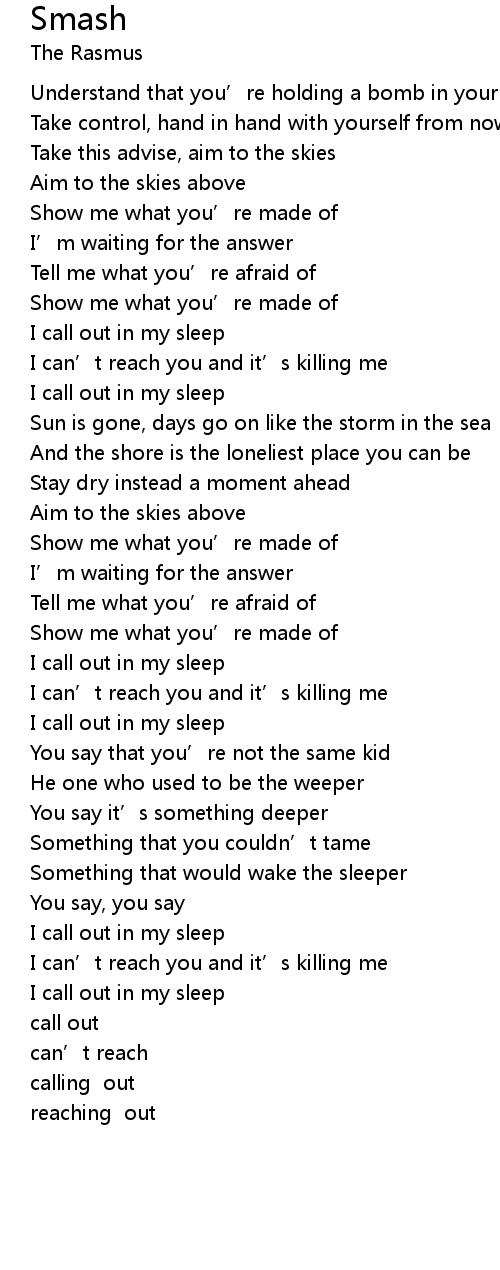 | [03:14.72] | I call out in my sleep |
