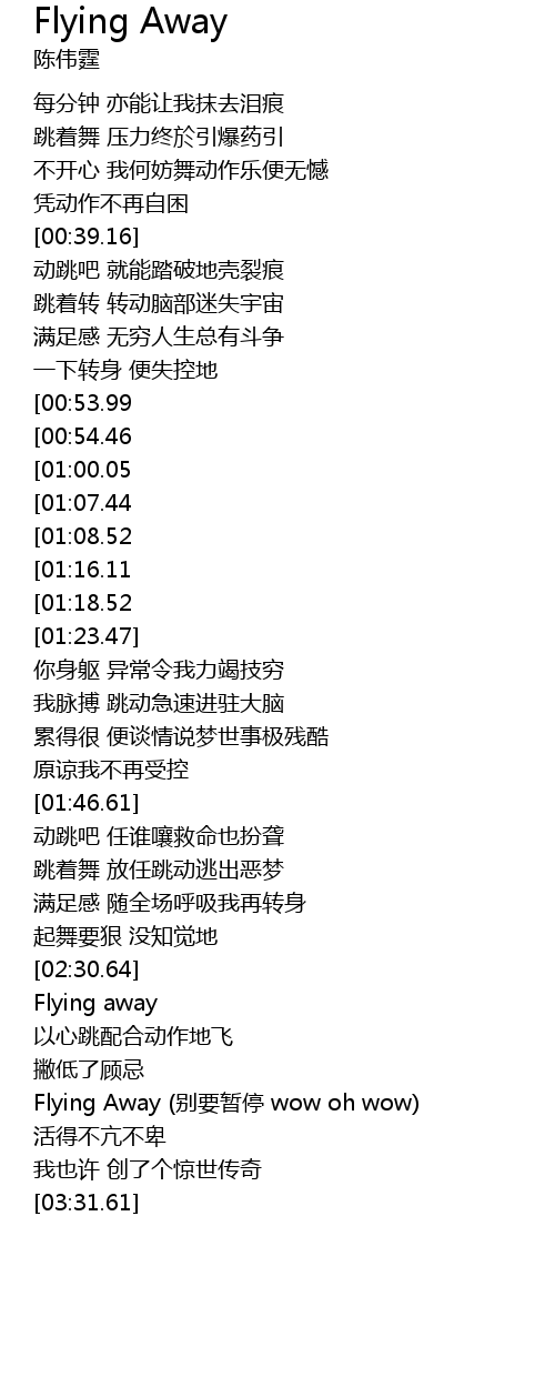 | [03:15.45] | Flying Away (别要暂停 wow oh wow) |