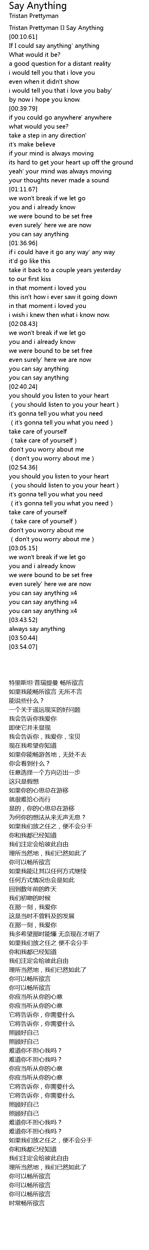 | 歌曲 | Say Anything |