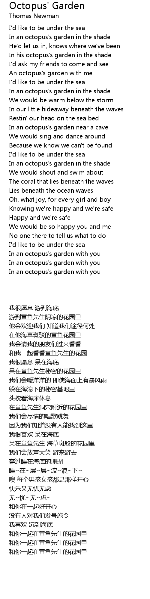 In an octopus's garden with you |