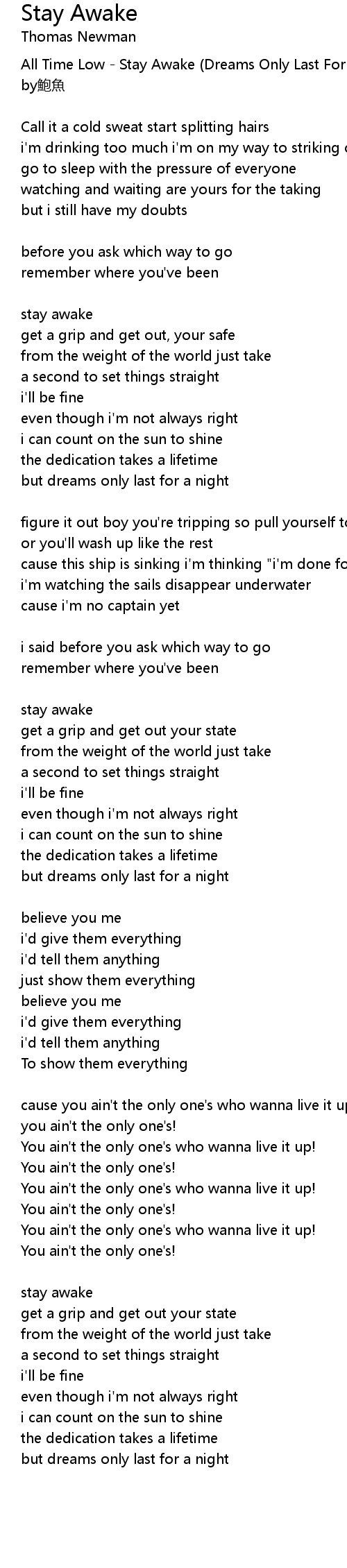 | All Time Low Stay Awake Dreams Only Last For A Night | |