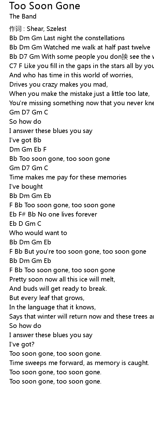 | Bb Too soon gone, too soon gone | |