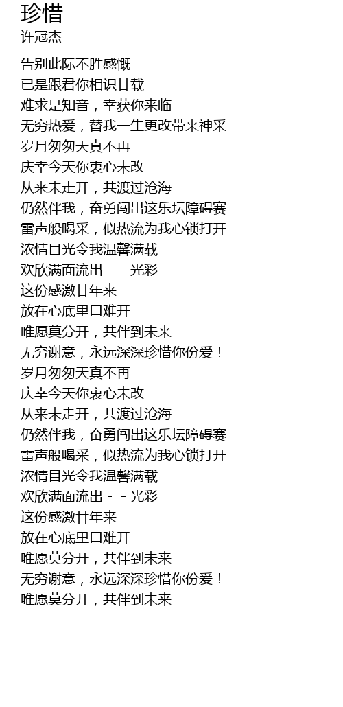 | [03:13.58] | 无穷谢意,永远深深珍惜你份爱! |