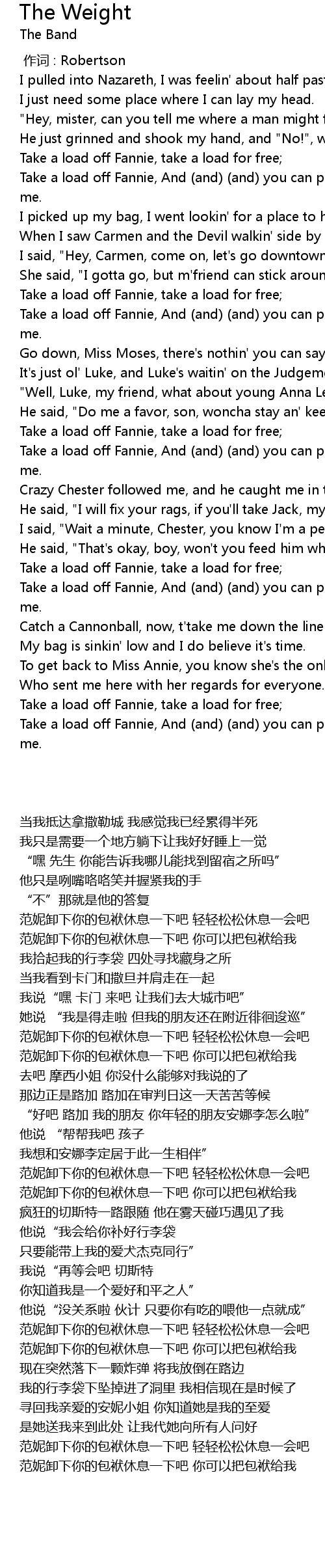 | 歌曲 | The Weight |