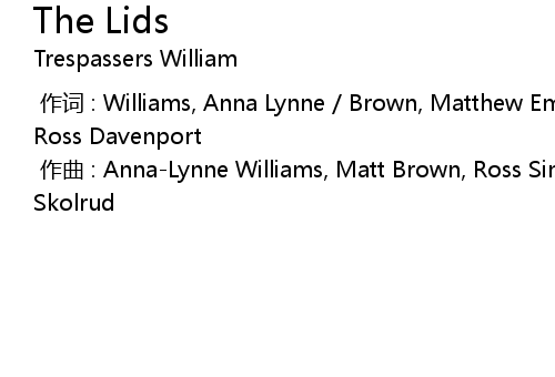 | [00:00.000] | 作词 : Williams, Anna Lynne / Brown, Matthew Emerson / Simonini, Ross Davenport |