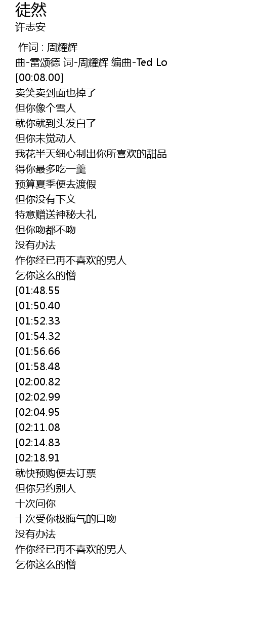 | [00:02.00] | 曲-雷颂德 词-周耀辉 编曲-Ted Lo |