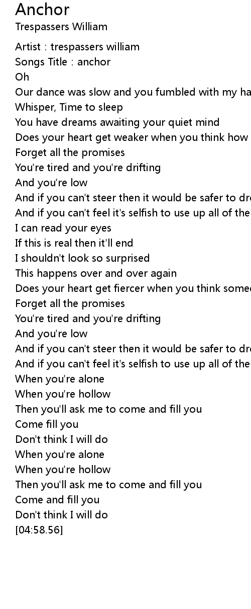 | [00:04.35] | Artist: trespassers william |