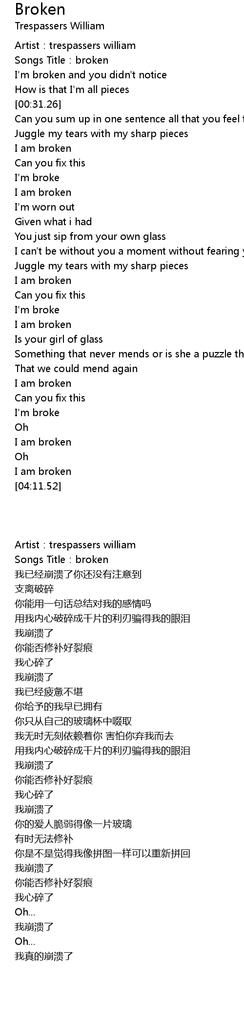 | [03:51.24] | I am broken |