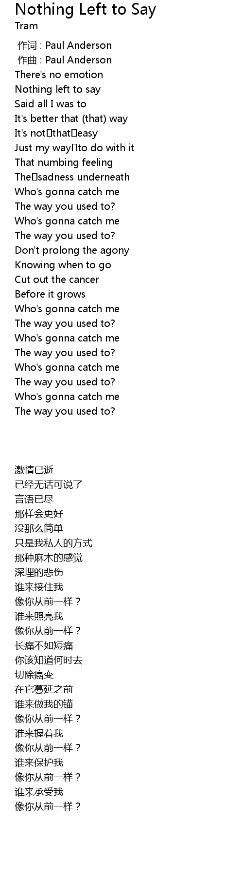 | 歌曲 | Nothing Left to Say |