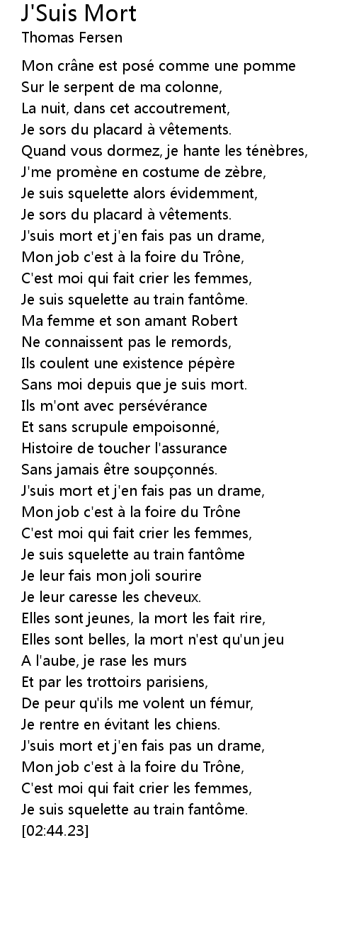 | [02:27.29] | J' suis mort et j' en fais pas un drame, |
