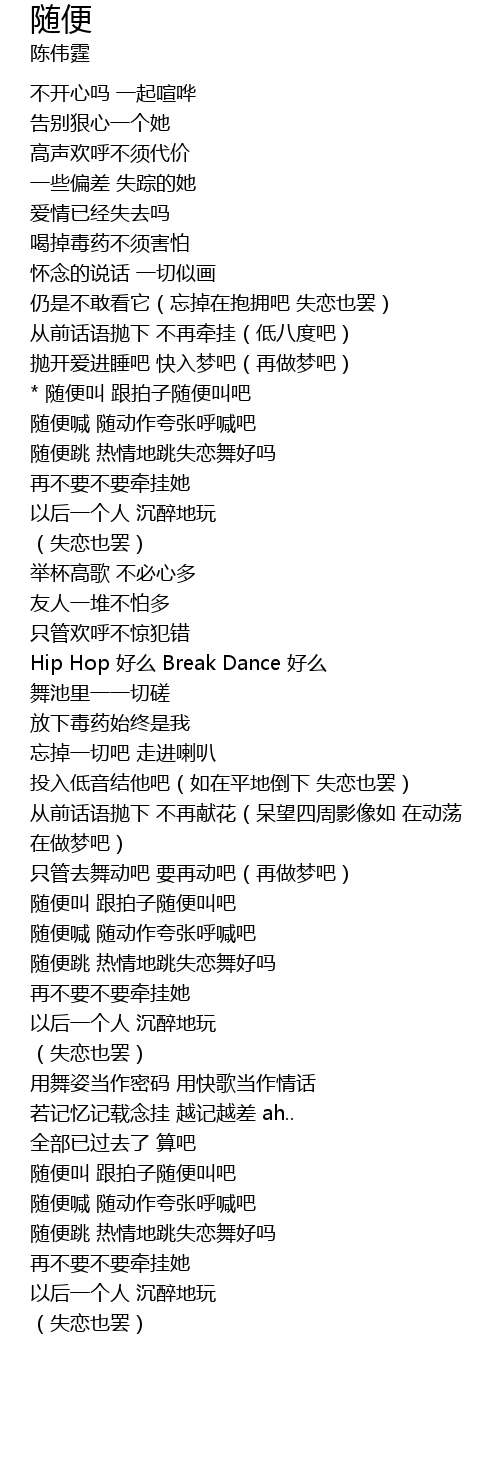 | [02:15.87] | 随便跳 热情地跳失恋舞好吗 |