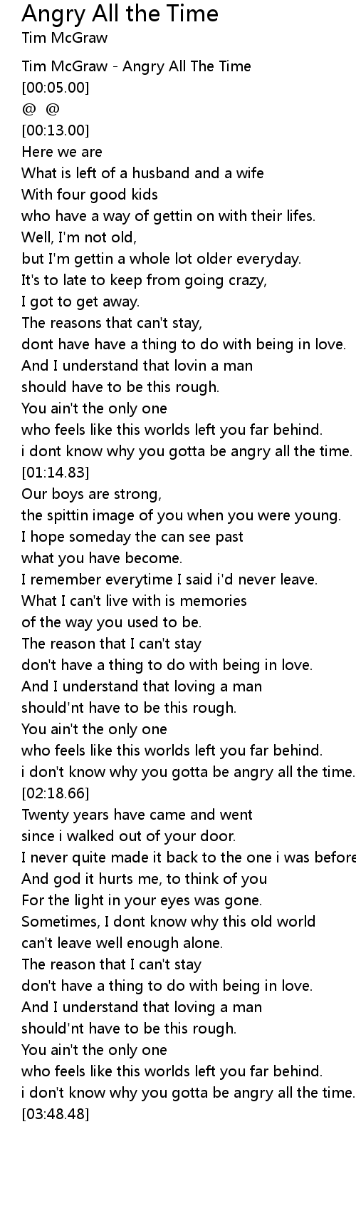 Tim McGraw - Angry All The Time |