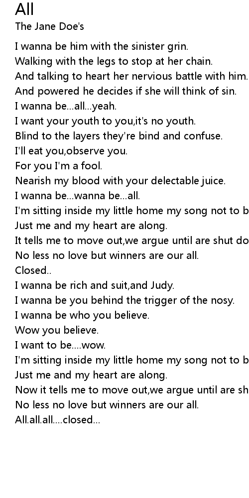 I wanna be...wanna be...all. |