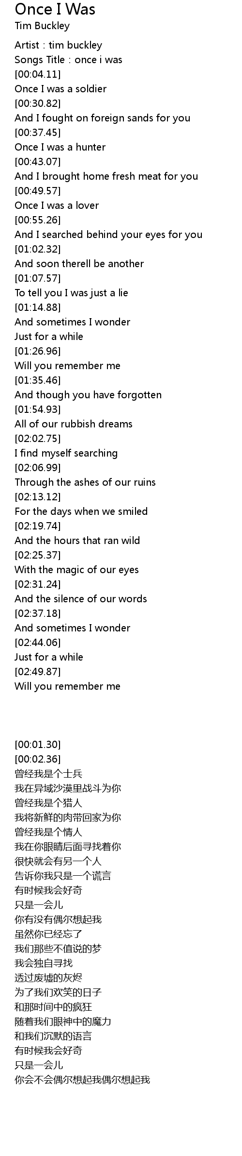| [00:02.36] | Songs Title: once i was |