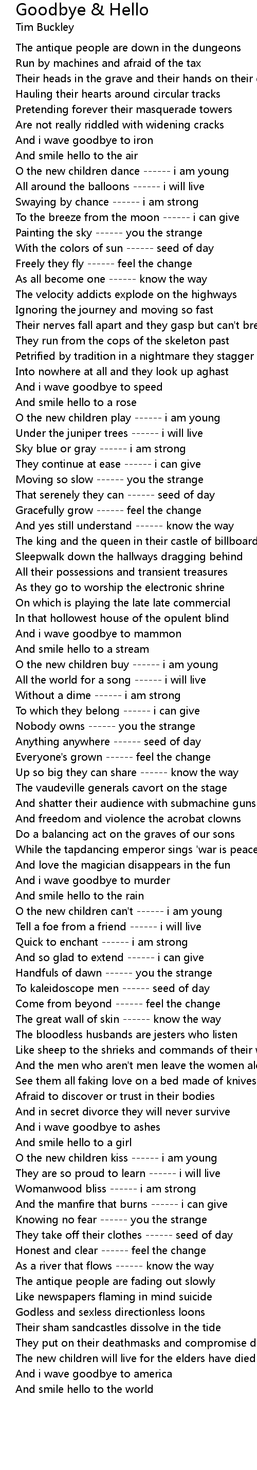 O the new children can't ------ i am young |