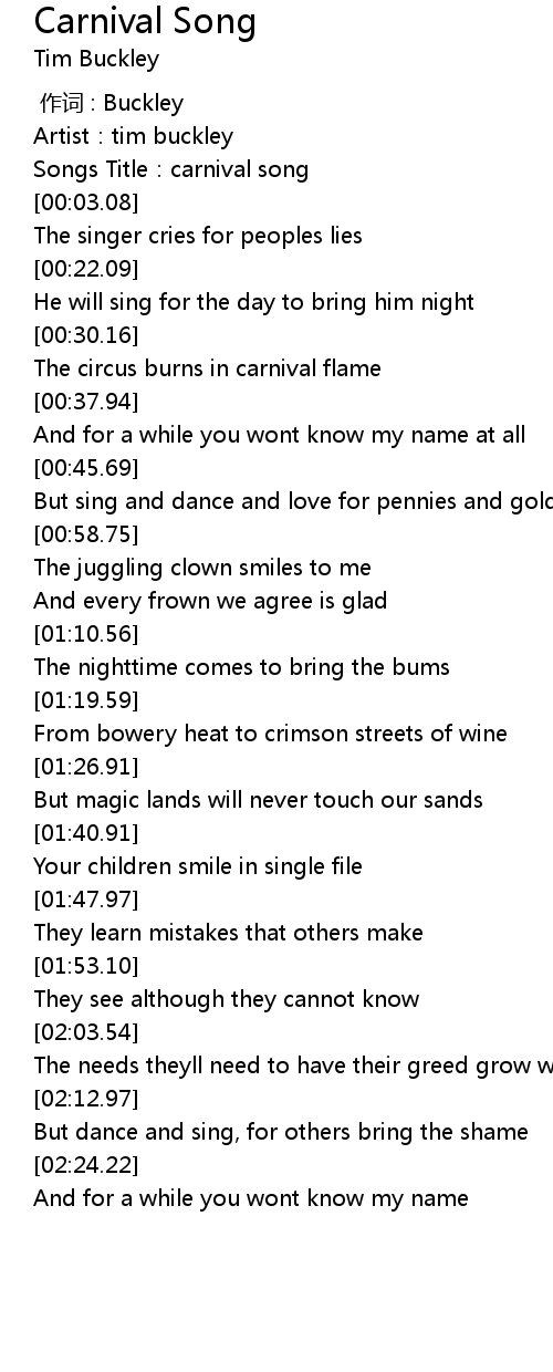 | [02:14.84] | But dance and sing, for others bring the shame |
