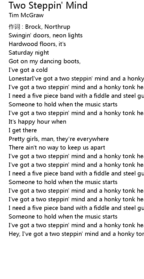 | LonestarI' ve got a two steppin' mind and a honky tonk heart | |