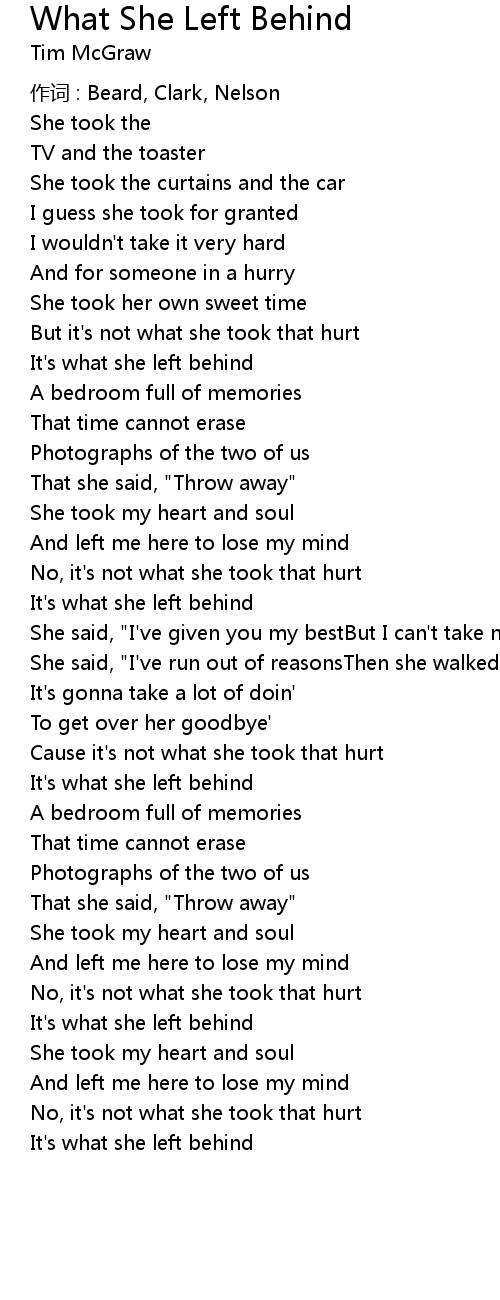 | She said, "I've run out of reasonsThen she walked out the door" | |