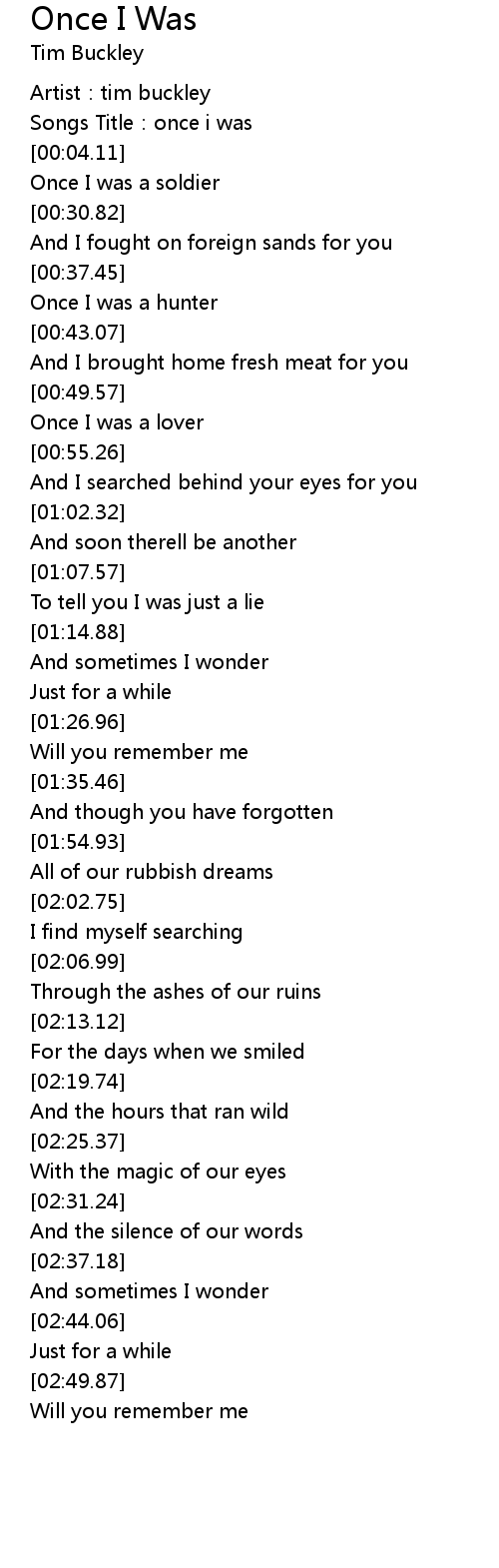 | [00:02.36] | Songs Title: once i was |