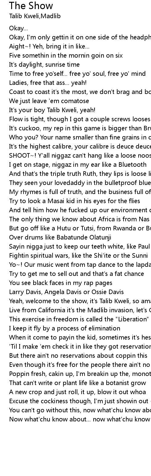 Yeah, welcome to the show, it's Talib Kweli, so amazin |