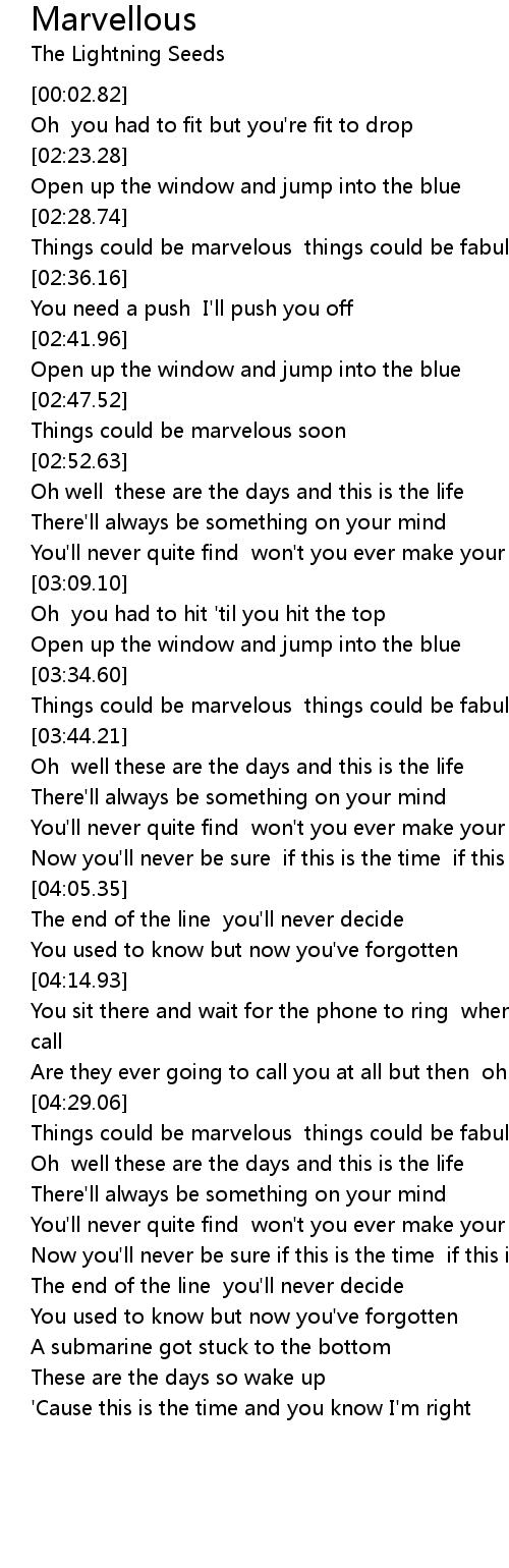 Things could be marvelous things could be fabulous |