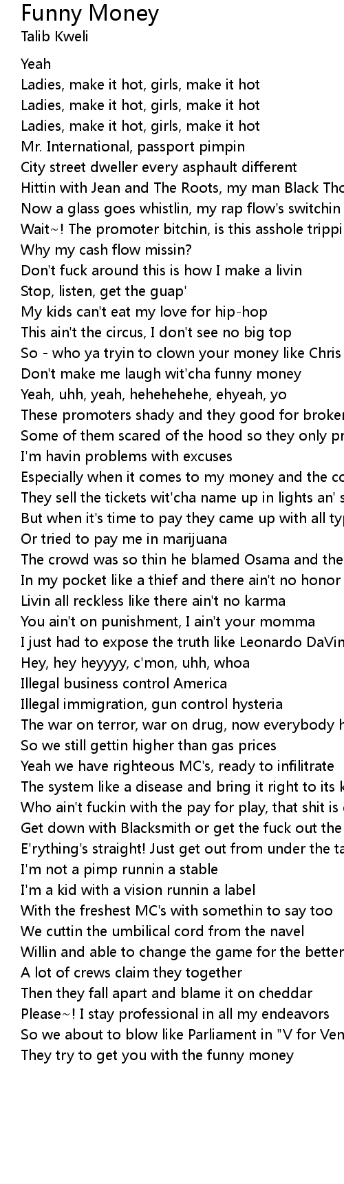 Don't make me laugh wit'cha funny money |