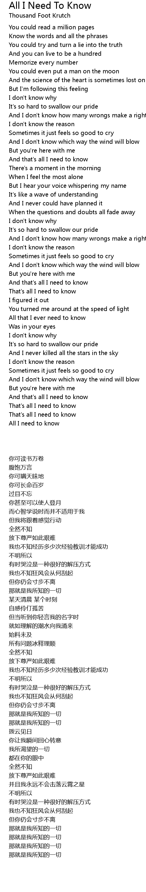 All I need to know |