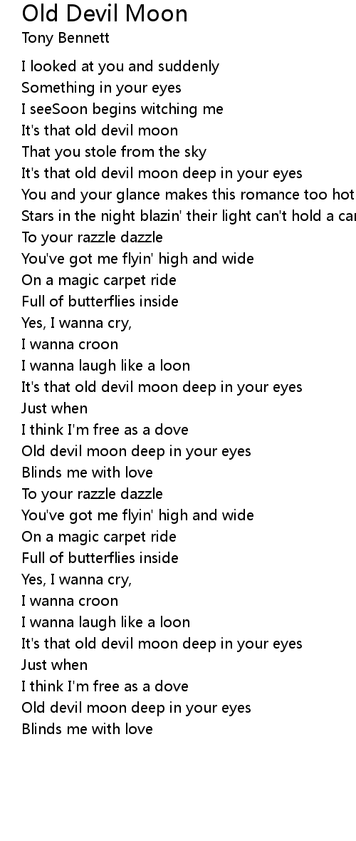 Old devil moon deep in your eyes |