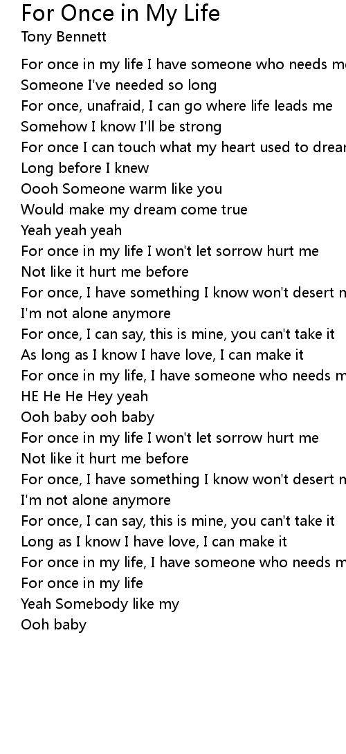 For once in my life |