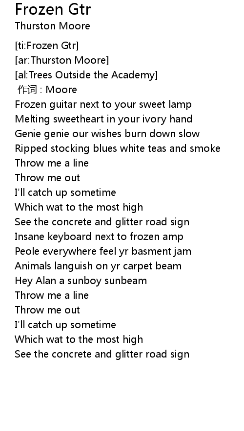 | [01:07.46] | Frozen guitar next to your sweet lamp |