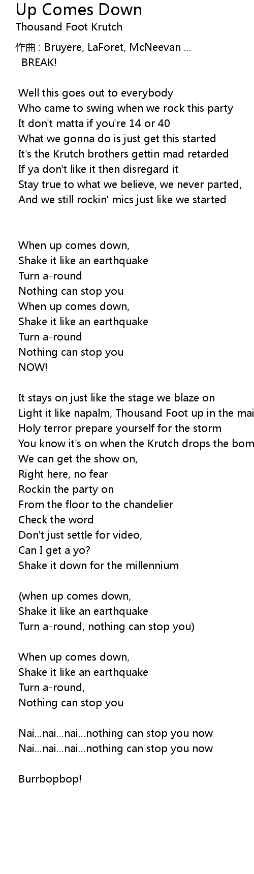 | 歌曲 | Up Comes Down |
