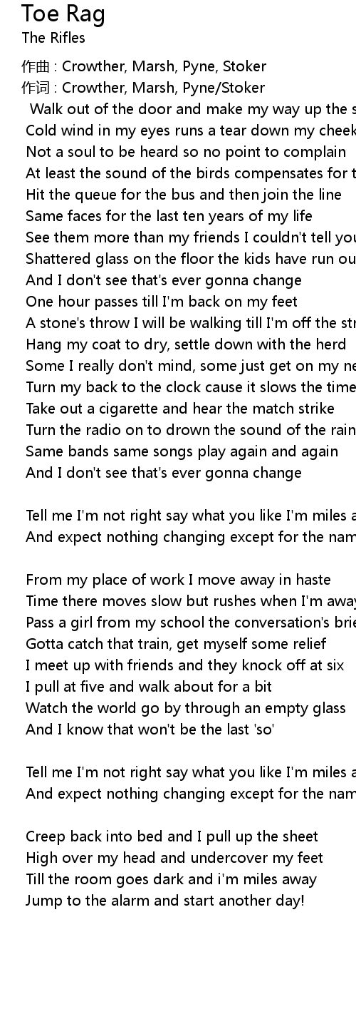 | 歌曲 | Toe Rag |