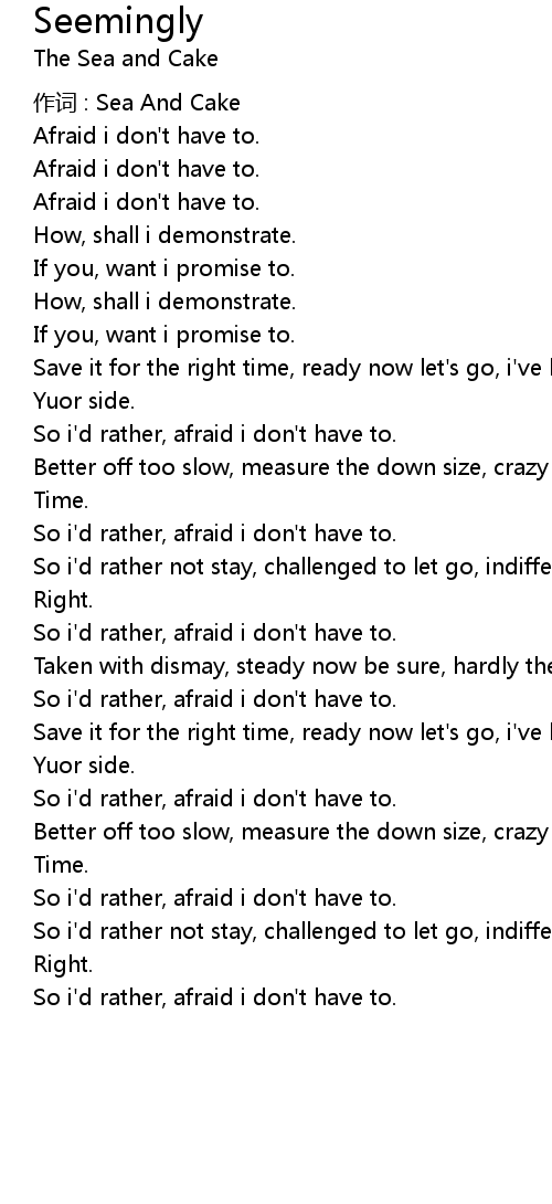 | 作词 : Sea And Cake | |
